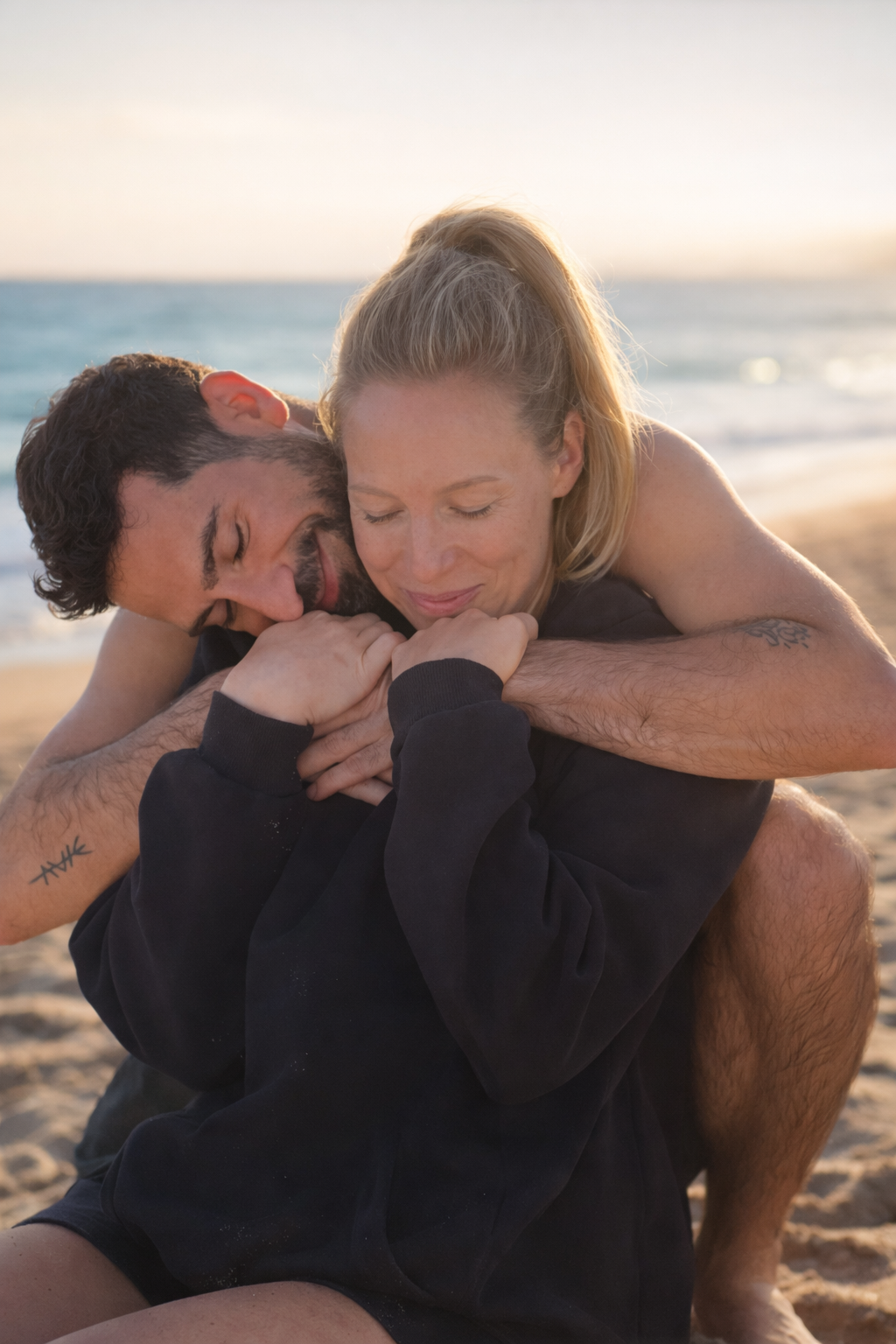 Vier handen die in één ritme bewegen — vloeiend, warm en golvend als de oceaan.